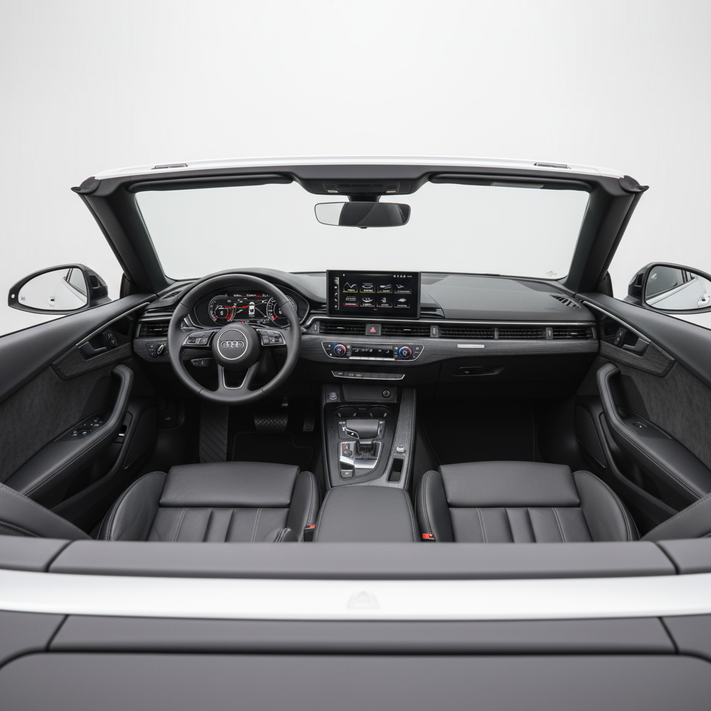 Il design dell'A5 Cabrio è un'ode all'eleganza e alle proporzioni perfette. La sua silhouette è fluida e atletica, con una linea di cintura ascendente che le conferisce una presenza imponente, sia con la capote in tela alzata che quando è ripiegata. Ogni dettaglio, dalla griglia Singleframe ai fari affilati, trasuda qualità e attenzione ai dettagli. All'interno, l'ambiente è un rifugio di lusso e tecnologia. I materiali sono di prima scelta, con assemblaggi impeccabili che trasmettono una sensazione di solidità e raffinatezza. È uno spazio progettato per il godimento dei suoi quattro occupanti, dove ergonomia e bellezza si incontrano.