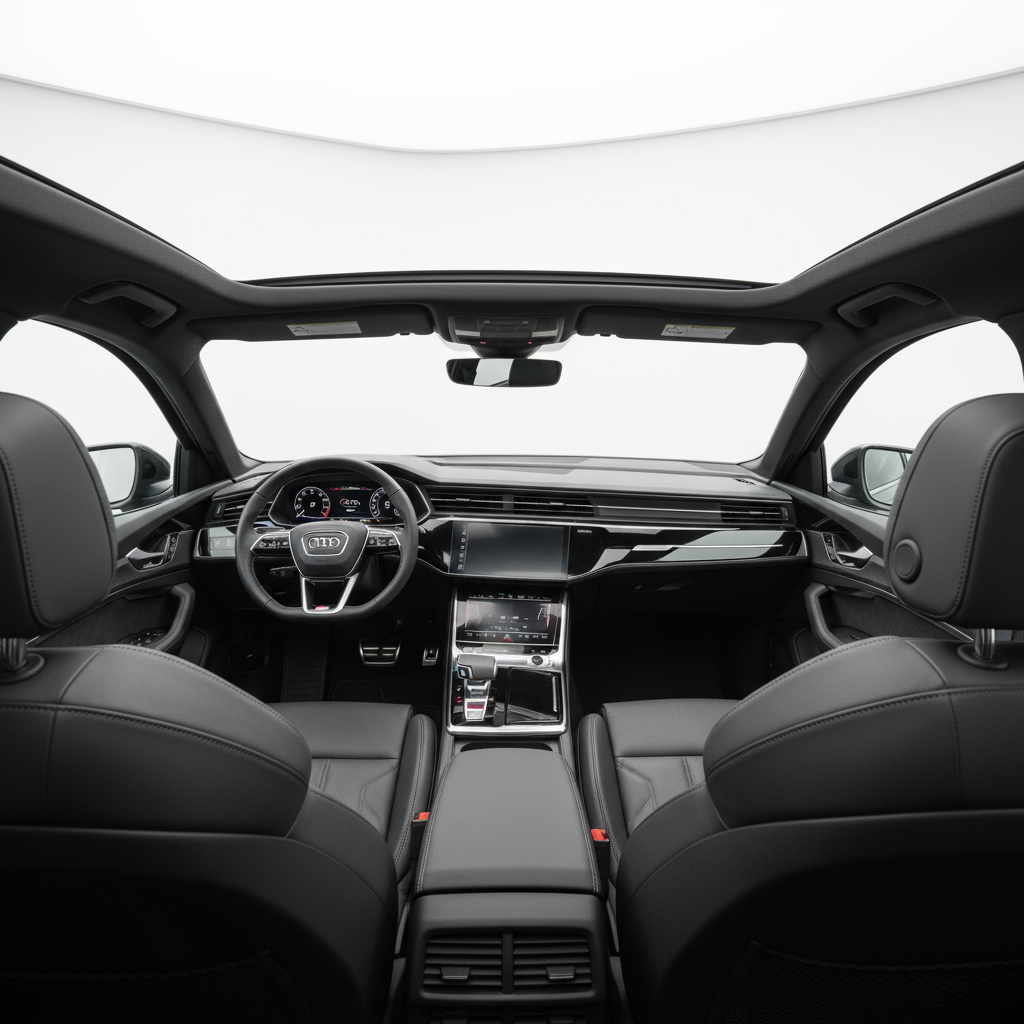 Il design della Q8 e-tron S line è una scultura in movimento. La sua presenza imponente, con una griglia Singleframe ridisegnata e una linea del tetto discendente, irradia una sportività sofisticata. Ogni dettaglio, dai fari Matrix LED ai passaruota muscolosi, parla del suo carattere premium. All'interno, l'ambiente è un santuario tecnologico e di lusso. Gli schermi del Virtual Cockpit e dell'MMI Touch Response si integrano perfettamente in un cruscotto minimalista, circondato da materiali squisiti che deliziano sia la vista che il tatto.
