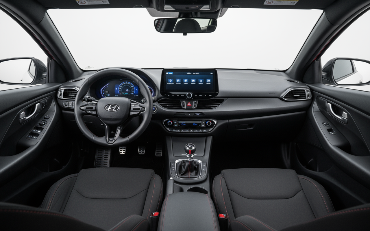 Il suo allestimento N Line la trasforma completamente. Le linee affilate, la griglia aggressiva e i paraurti sportivi le conferiscono una presenza imponente che non passa inosservata. I cerchi da 18 pollici completano un insieme muscoloso e ben proporzionato che grida sportività da ogni angolazione. All'interno, quell'atmosfera continua con sedili che ti avvolgono, un volante sportivo e dettagli in rosso che ti ricordano costantemente che non sei su una i30 qualsiasi. È un design che emoziona e ti rende orgoglioso della tua scelta.