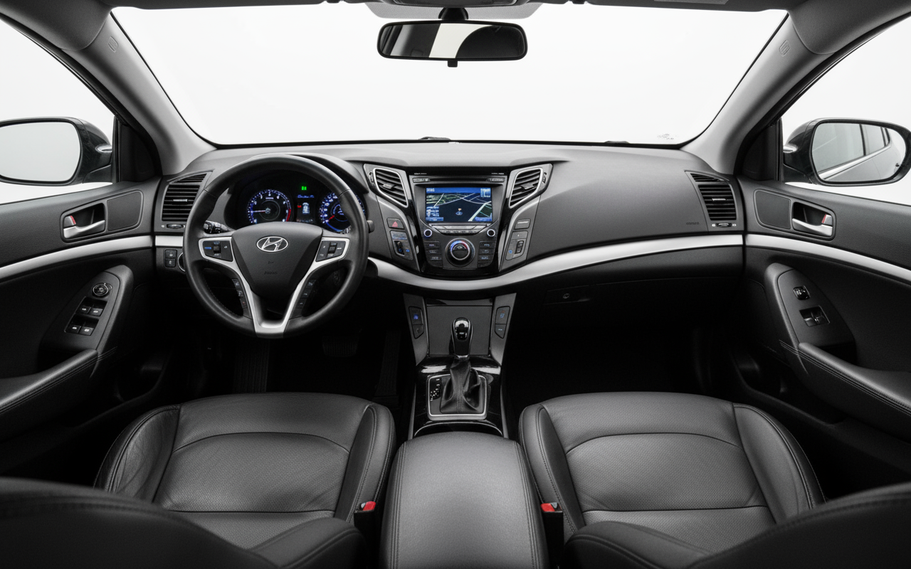 Il design della Hyundai i40 Berlina del 2012 è caratterizzato da linee fluide ed eleganti, che mirano a un'immagine moderna e attraente. Con una lunghezza di 4740 mm e una larghezza di 1815 mm, offre una presenza imponente sulla strada. I fari anteriori, con un design affilato, si integrano armoniosamente con la griglia frontale. La silhouette della berlina è classica, con una dolce caduta del tetto verso la parte posteriore, che culmina in fari posteriori ben proporzionati. All'interno, il design è funzionale ed ergonomico, con una plancia ben organizzata e materiali che, pur non essendo premium, trasmettono una sensazione di solidità.