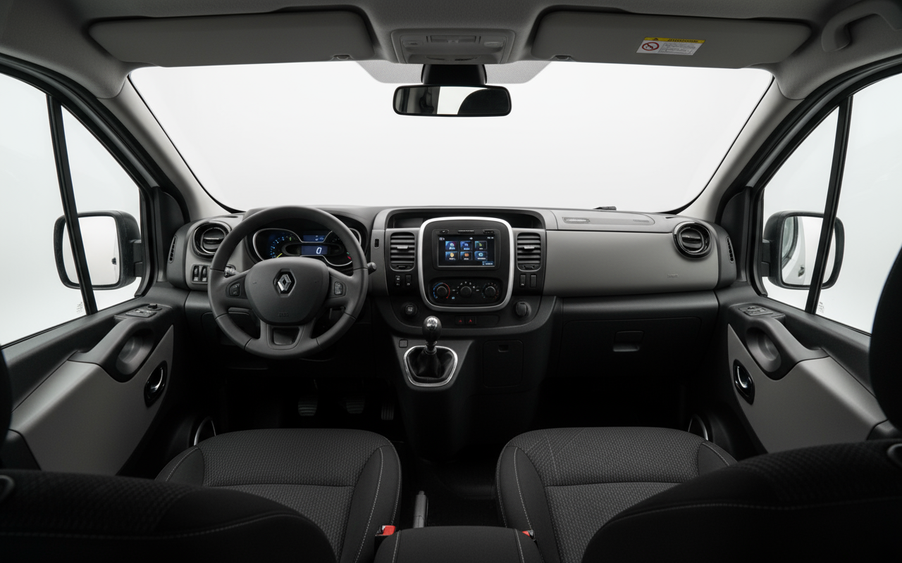 Nel reparto tecnologico, il Renault Trafic Lungo di questa generazione incorpora elementi essenziali per il comfort e la sicurezza. Il suo motore 1.6 dCi Twin Turbo, con iniezione diretta common rail e turbo a geometria variabile, ottimizza il consumo di carburante e le emissioni, rispettando la normativa Euro 5. Il sistema Stop&Start contribuisce all'efficienza in ambienti urbani. Per quanto riguarda la connettività e l'infotainment, sebbene non disponga delle ultime innovazioni delle autovetture più moderne, offre il necessario per un viaggio piacevole, con opzioni radio e connettività di base. Lo sterzo assistito elettroidraulico facilita la guida, e i freni a disco ventilati anteriori e i dischi posteriori garantiscono una frenata efficace. La tecnologia a bordo è orientata alla funzionalità e alla durabilità, senza fronzoli inutili.