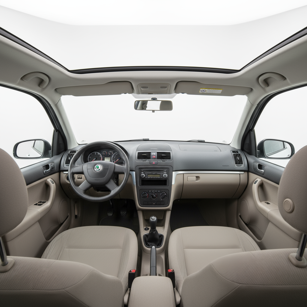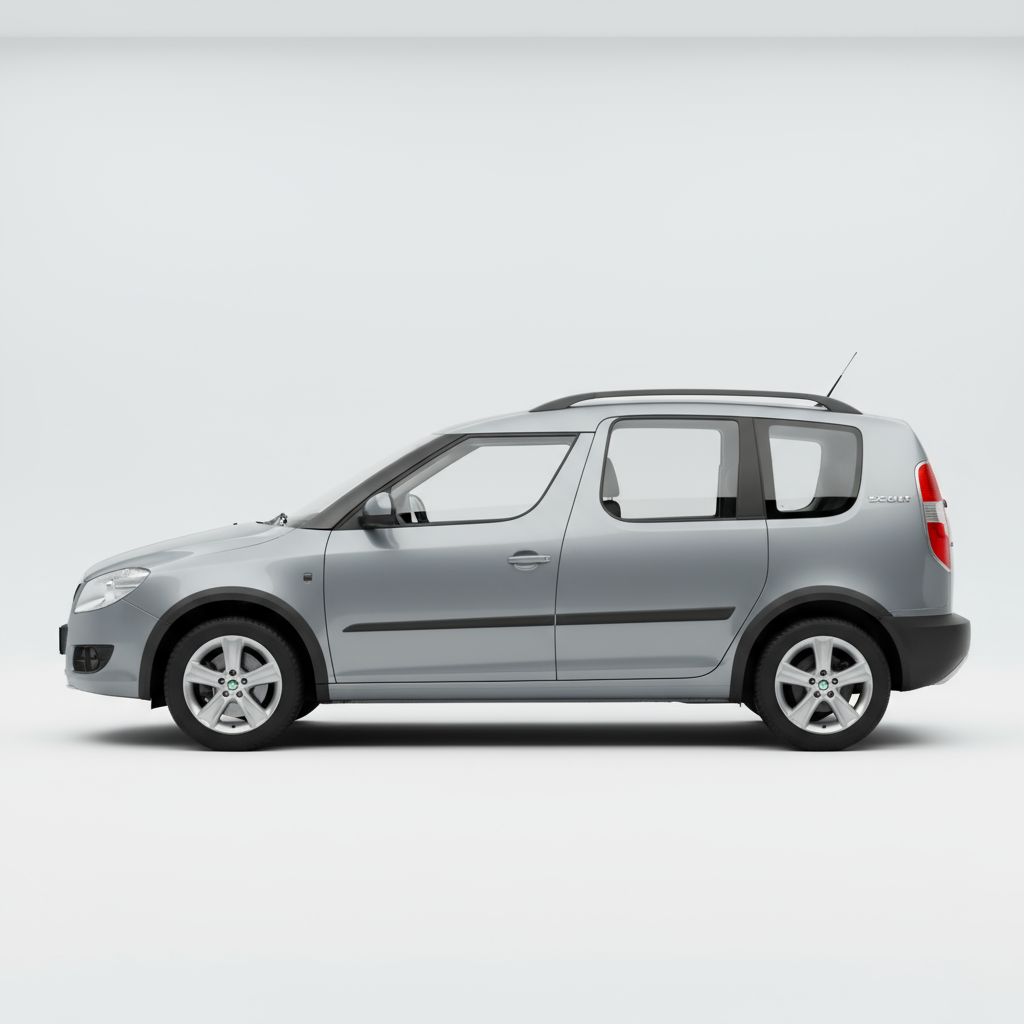 Il design dello Skoda Roomster Scout è inconfondibile e polarizzante. La sua carrozzeria a cinque porte combina linee robuste con dettagli che evocano uno spirito fuoristrada, come i passaruota allargati e le protezioni inferiori. Le dimensioni compatte (4219 mm di lunghezza, 1695 mm di larghezza e 1650 mm di altezza) lo rendono maneggevole in città, mentre il suo passo di 2617 mm contribuisce a un interno sorprendentemente spazioso. I cerchi da 17 pollici con pneumatici 205/40 R17 gli conferiscono una presenza più dinamica. L'interno, sebbene funzionale, beneficia di una buona abitabilità e di un generoso bagagliaio di 450 litri, ideale per le famiglie.