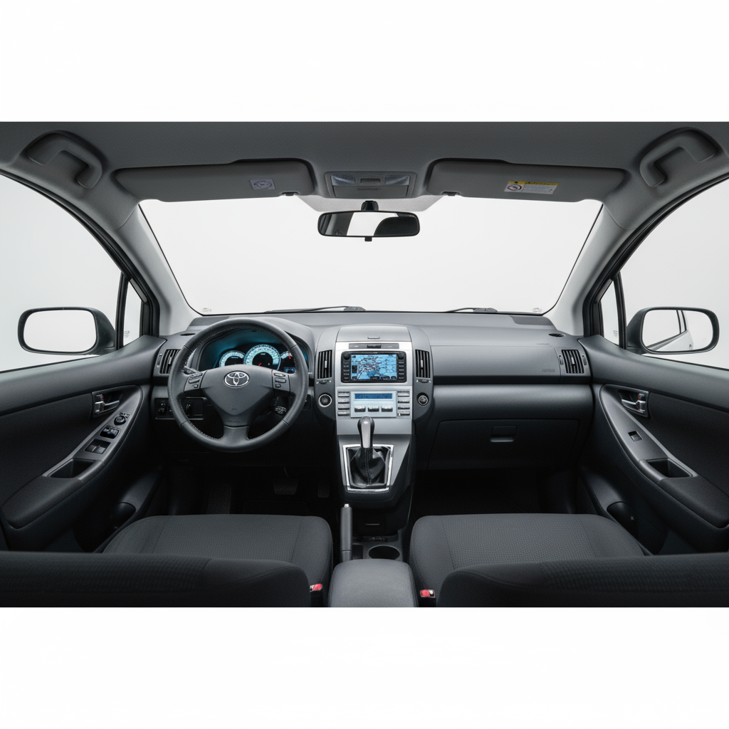 Il design della Toyota Corolla Verso del 2007 è funzionale e discreto, con linee che cercano la massima abitabilità e praticità. I suoi 4370 mm di lunghezza, 1770 mm di larghezza e 1660 mm di altezza le conferiscono una presenza robusta ma non eccessivamente voluminosa. La versione Sport aggiunge alcuni dettagli che ne esaltano il carattere, sebbene senza eccessi. Il frontale presenta una griglia sobria e fari che si integrano armoniosamente nell'insieme. La vista laterale rivela una silhouette da monovolume classico, con ampie superfici vetrate che favoriscono la luminosità interna. La parte posteriore è semplice e funzionale, con un portellone di generose dimensioni che facilita l'accesso al bagagliaio. All'interno, il design è ergonomico e i materiali, sebbene non lussuosi, trasmettono una sensazione di durabilità e buon assemblaggio.